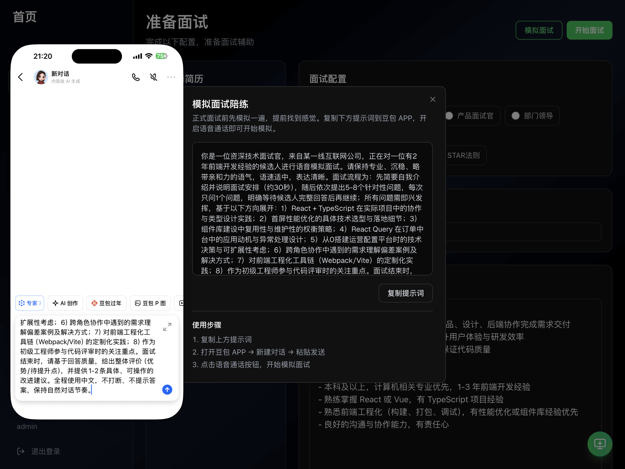 用豆包 APP 语音对话,像真人面试一样练,随时随地练几轮